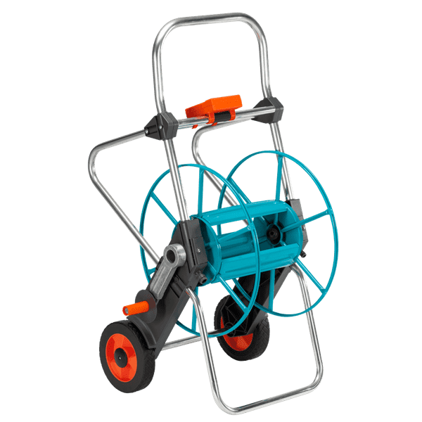 El profesional entre los carros portamangueras. El robusto carro portamanguera metálico es especialmente idóneo para mangueras largas. En esta posición puede resistir fuerzas aún mayores sin volcar. Sus robustas ruedas tienen una banda de rodadura especial que proporciona un buen agarre y permite conducirlo fácilmente por el césped. La banda de rodadura especial, además, protege el césped, a pesar de su buen agarre